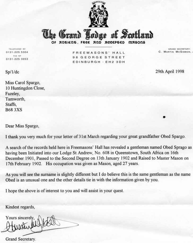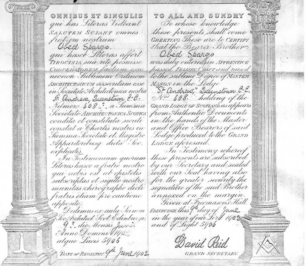 What we do know is that he became a Master Mason of the St Andrew Lodge, attached to the Grand Lodge of Scotland on June 1902.
