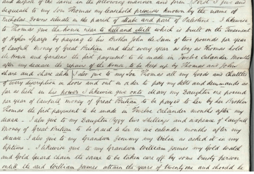 The most interesting document regarding James is his Will which he made in 1851 after the death of his wife Peggy in May of that year. The original is held at Kresen Kernow – the Record Office in Redruth