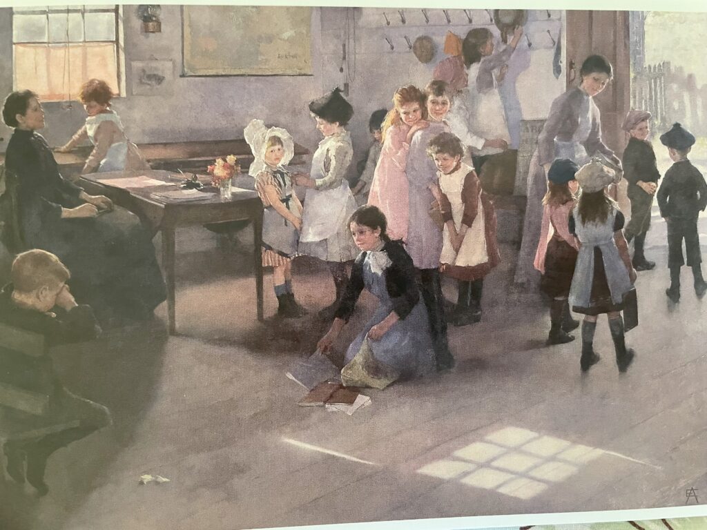 This painting is by Elizabeth Forbes who went on to marry Stanhope Forbes a leading member of the Newlyn artists in the later Victorian and early 20th Century. It was completed in 1889.