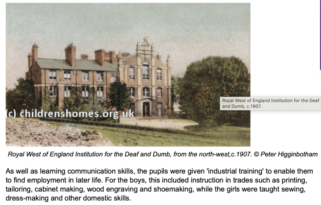 This is William Foxwell Waters (Willie), their eldest son. He contracted meningitis as a small child which left him deaf. He had not learned to speak, so was described in early censuses as deaf and dumb. He went to Paul Board School.until according to Paul School Log Books. Willie then attended a Deaf and Dumb Institution in Exeter. from Sept 1896 (aged 12) to Dec 1899. Joseph paid a contribution of between 10 and 15 pounds a year. This school aimed to teach practical skills.